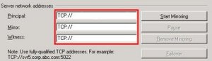 (I edited the image to take out server name and such; but in the princple network address, it will have TCP://ServerName:Port, as same for Mirror and Witness box, when not fully qualified.)
