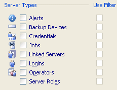 - Like the server objects you can also choose to set an filter on all or any of the objects in the database.