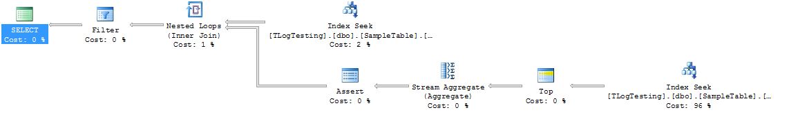 Problem with this execution plan is it generates a full scan but why? We are passing in the ID value so it should only need to select subset of the data. Problem is the sub-select being used to complete the max date for given ID has no Group-By clause and the sub-select doesn’t know anything about the MainID. So execution plan does the following to return us the result set: