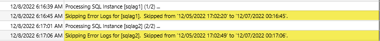 If the error log collection is skipped, you will see following message in SQLOpDB Logs report.