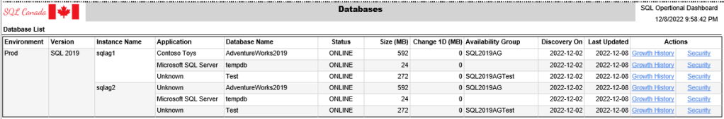This drill through report lists all the databases by status selected. We’ll drill into this report later.