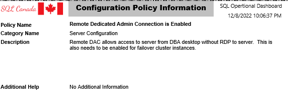As stated in previous reports, all the dashboard elements offer drill through. To investigate the additional details behind the summary data. The summary layout is saved in Snapshot.* tables and are only generated once at the end of DataCollection script. If you feel snapshot is incorrect or incomplete, execute Snapshot.CreateDatabaseSnapshot stored procedures. It will drop existing snapshots before creating new.