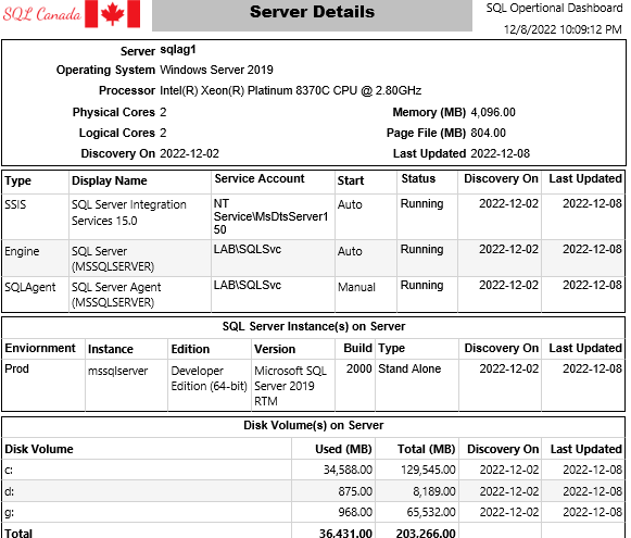 This report provides list of all services and their current status. The report is filtered by Service Type (SSIS) in case below and Status (Running or Stopped). This report provides quick view which services need to be addressed. Again list does not provide any service where Start Mode is Manual or Disabled.